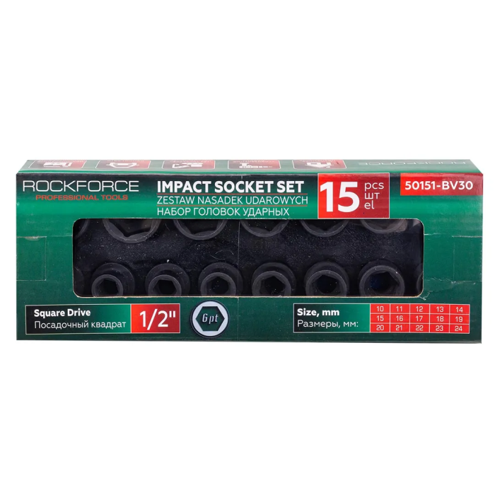 Набор ударных головок 10-24 мм 1/2'' 6-гр 15 пр RockForce RF-50151-BV30