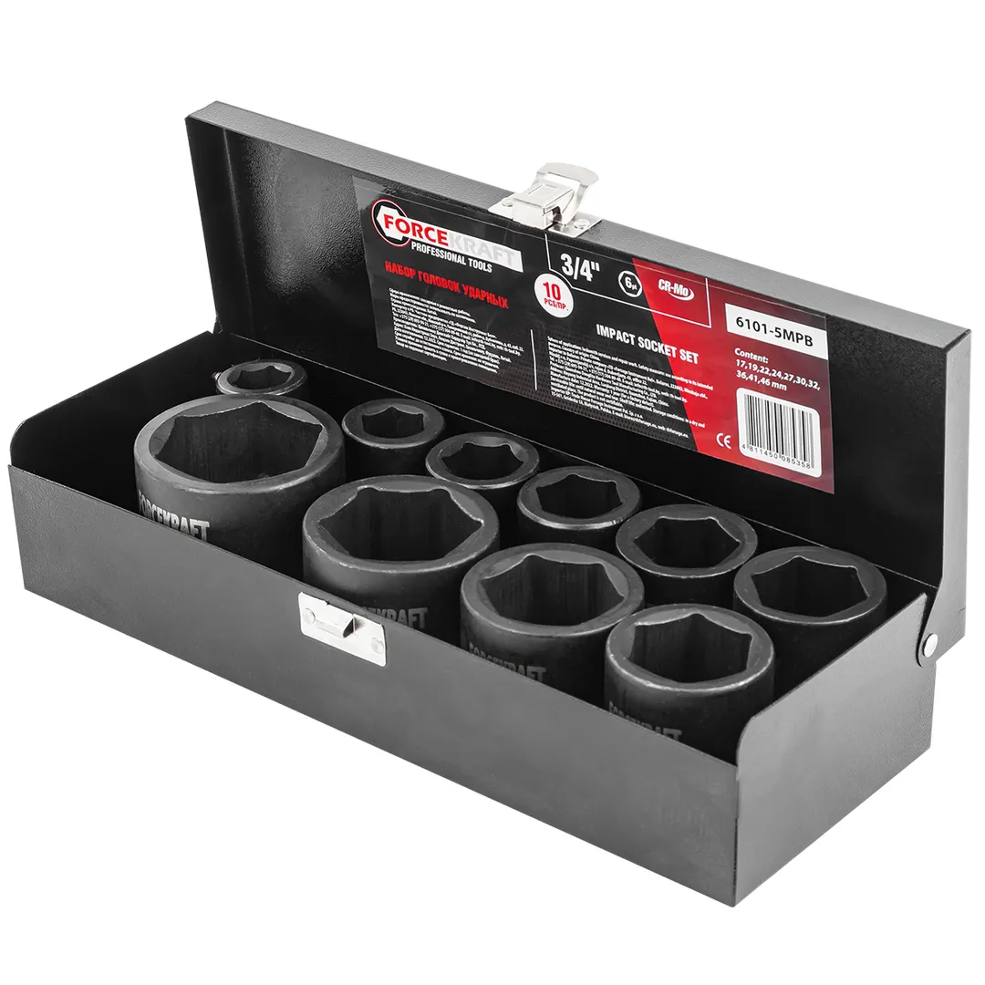 Набор головок ударных 17-46 мм 3/4'' 6-гр 10 пр ForceKraft FK-6101-5MPB