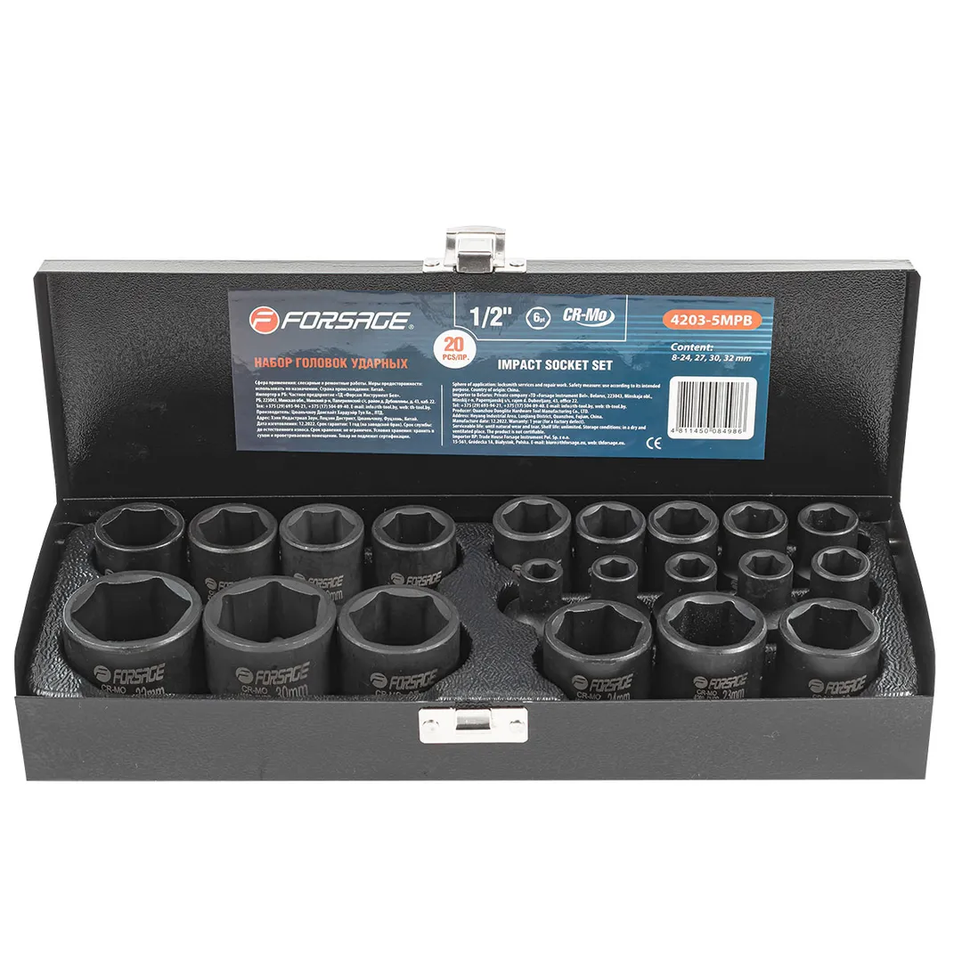 Набор ударных головок 8-32 мм 1/2'' 6-гр 20 пр Forsage F-4203-5MPB