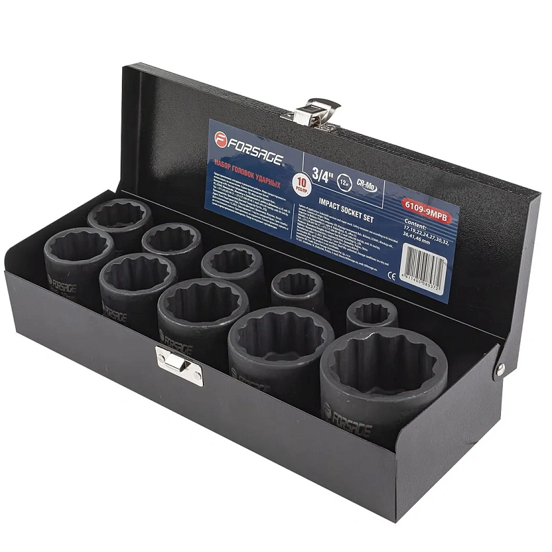 Набор головок ударных 3/4'' 10 пр 12-гр 17-46 мм Forsage F-6109-9MPB