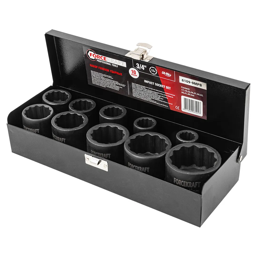 Набор ударных головок 17-46 мм 3/4" 12-гр 10 пр ForceKraft FK-6109-9MPB