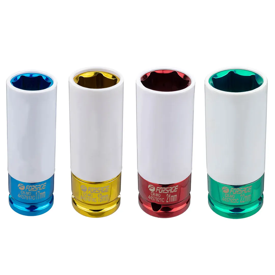 Набор ударных глубоких тонкостенных головок 17, 19, 21, 22 мм в защитном кожухе 4 пр 1/2'' 6-гр Forsage F-4046