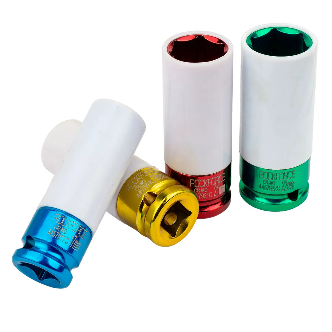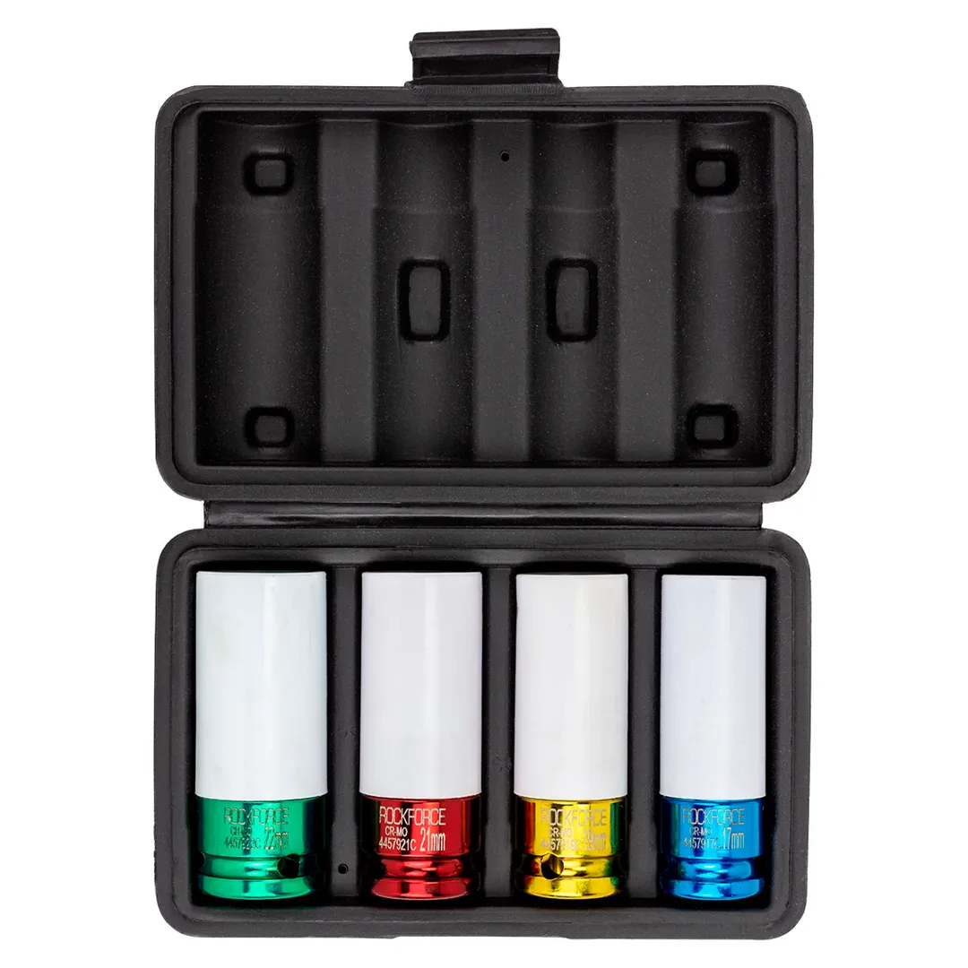 Набор ударных глубоких тонкостенных головок 17, 19, 21, 22 мм в защитном кожухе 4 пр 1/2'' 6-гр RockForce RF-4046