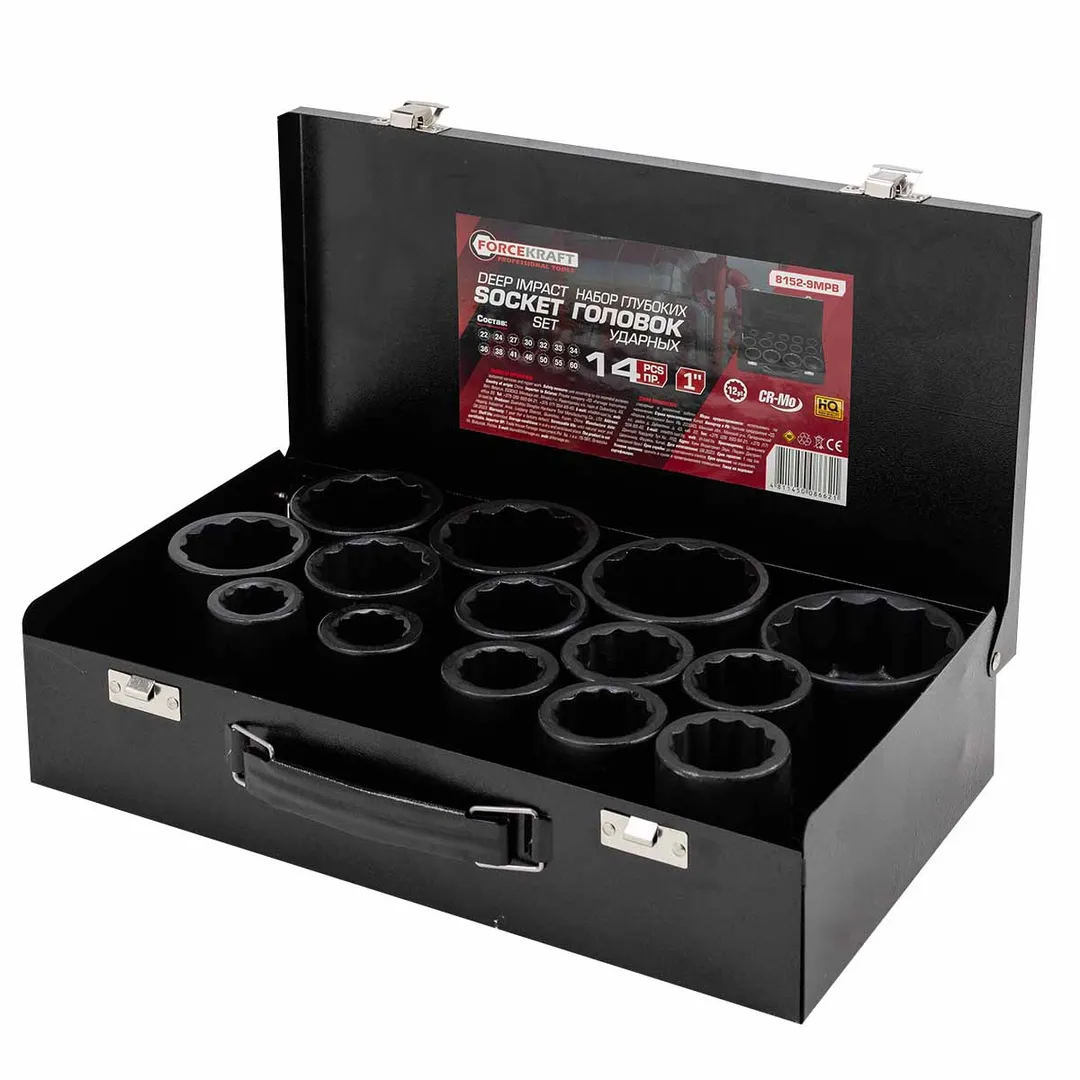 Набор головок ударных глубоких 1'' 14 пр. 12-гр 22,- 60 мм ForceKraft FK-8152-9MPB, описание и характеристики:
