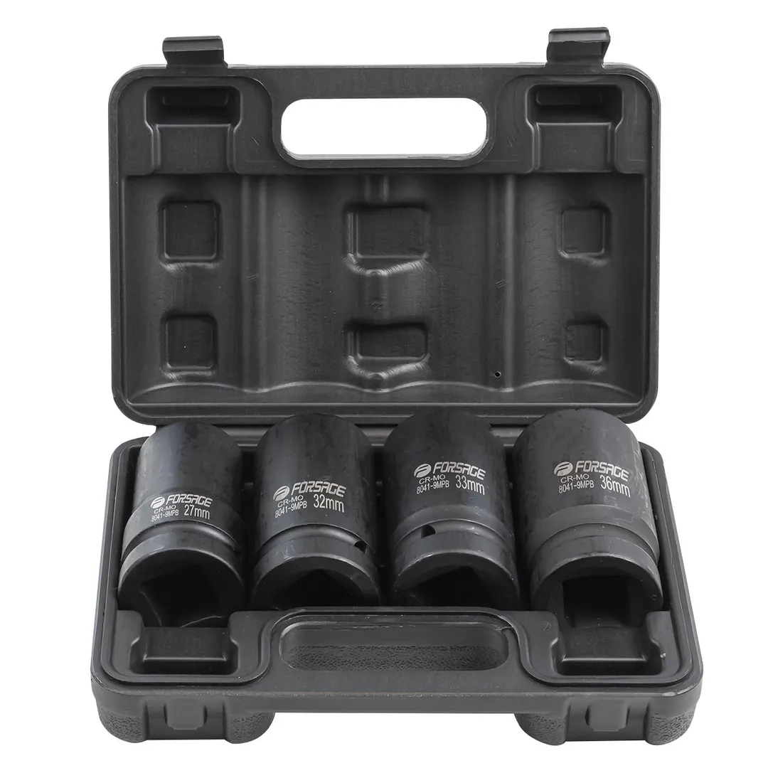Набор головок ударных глубоких 1" 4 пр., 12-гр., 27, 32, 33, 36 мм Forsage F-8041-9MPB
