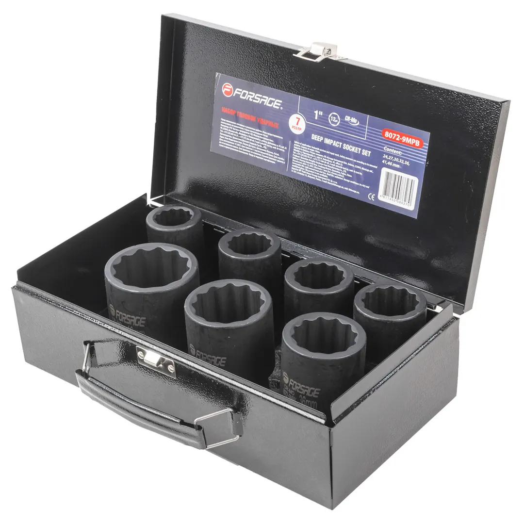 Набор головок ударных глубоких 1" 7 пр., 12-гр., 24-46 мм Forsage F-8072-9MPB
