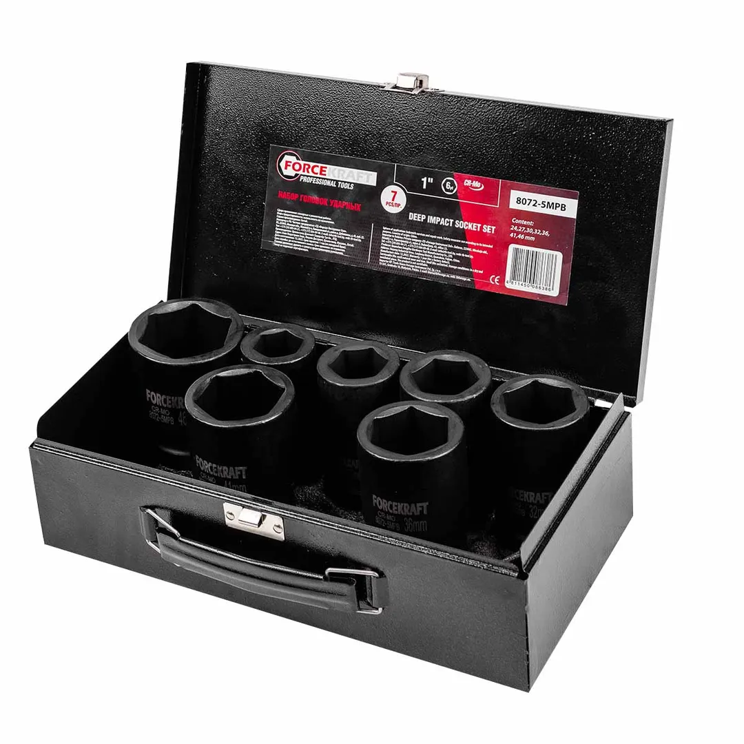 Набор головок ударных глубоких 1'' 7 пр. 6-гр 24- 46 мм ForceKraft FK-8072-5MPB