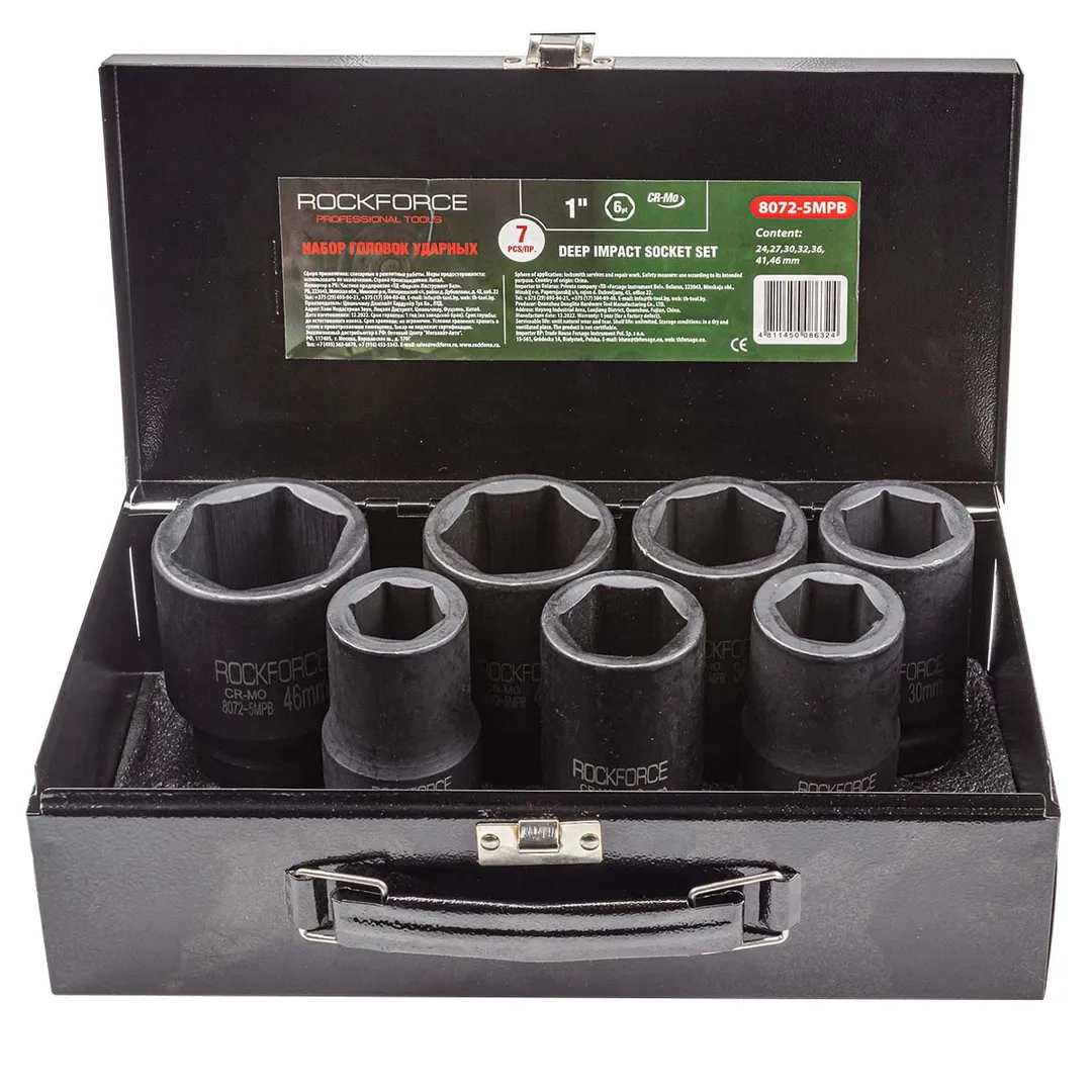 Набор головок ударных глубоких 1" 7 пр., 6-гр., 24-46 мм RockForce RF-8072-5MPB, описание и характеристики: