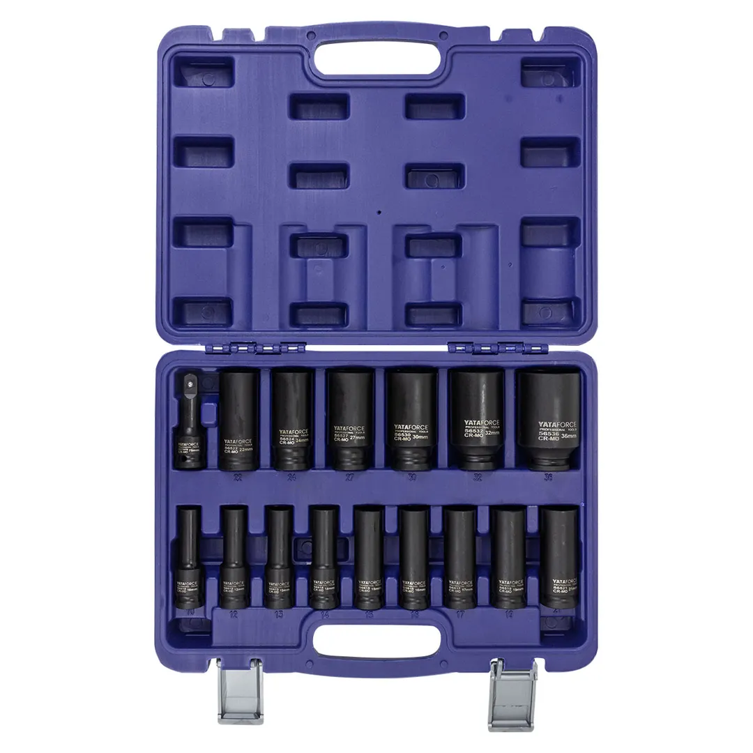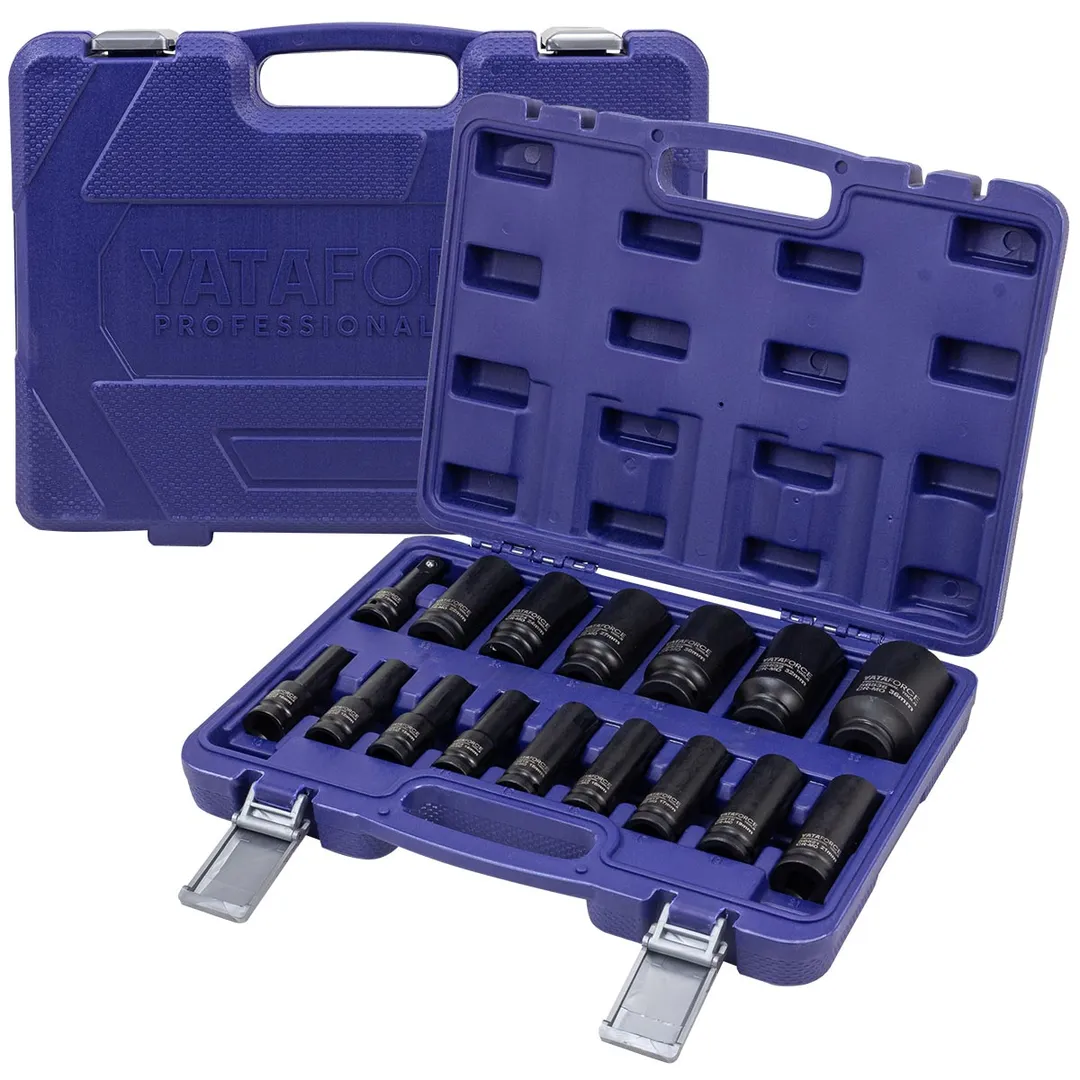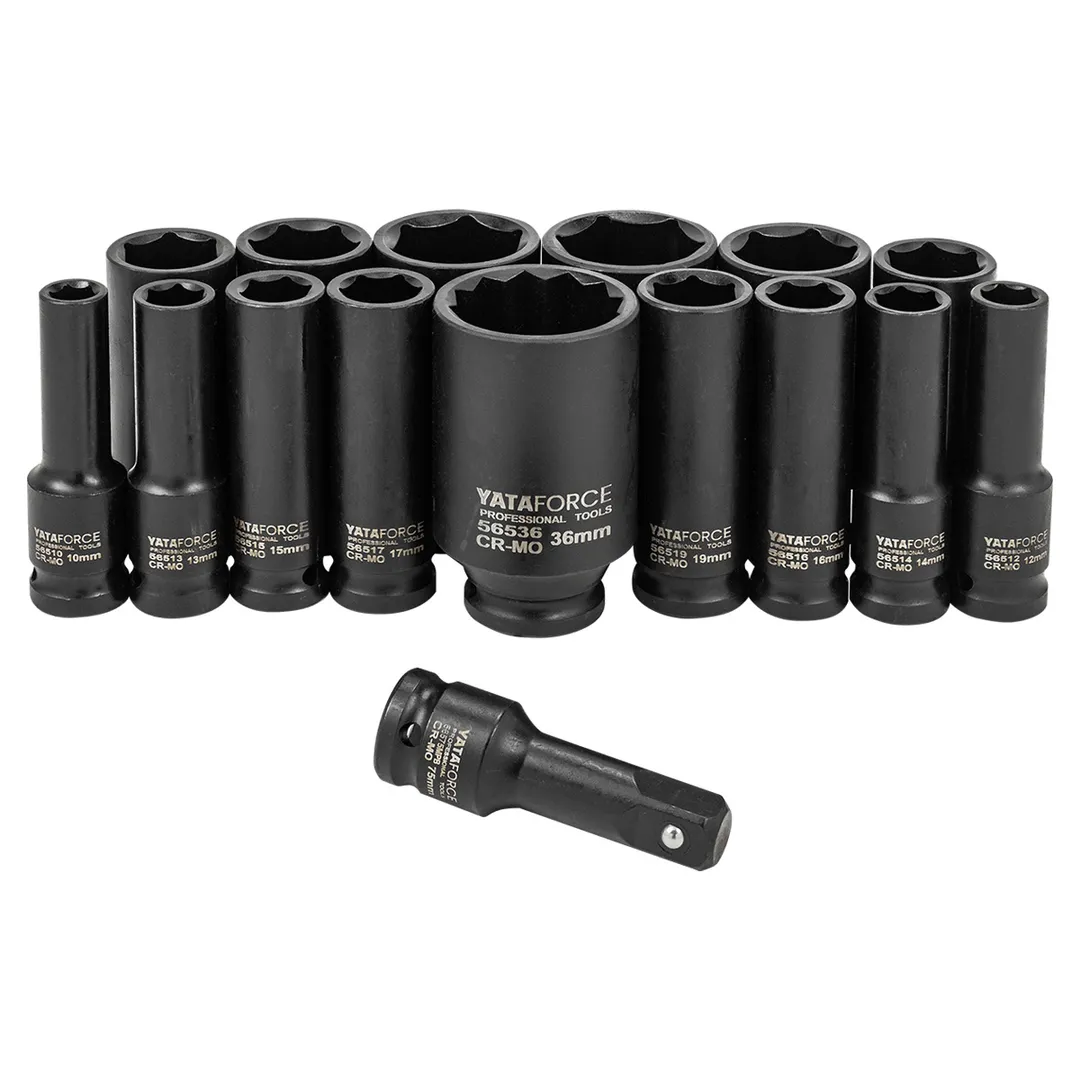 Набор глубоких ударных головок 10-32 мм 6-гр, 36 мм 12-гр, 1/2'' 16 пр, удлинитель 75 мм YATAFORCE YF-4177-5MPB