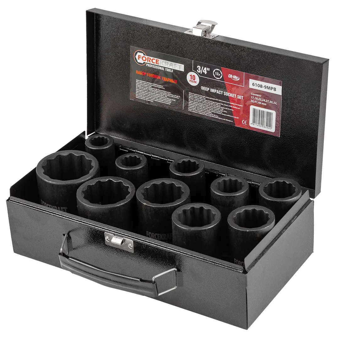 Набор головок ударных глубоких 17-46 мм 3/4'' 12-гр 10 пр ForceKraft FK-6108-9MPB
