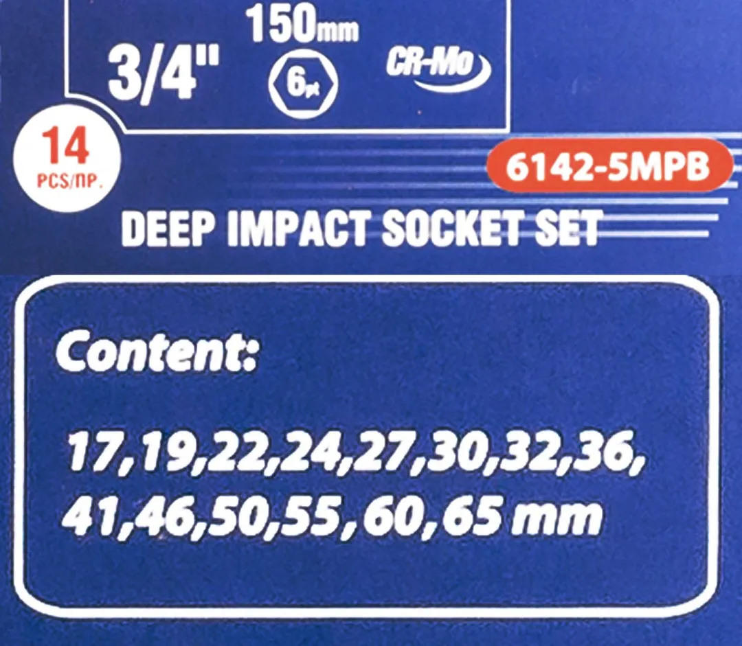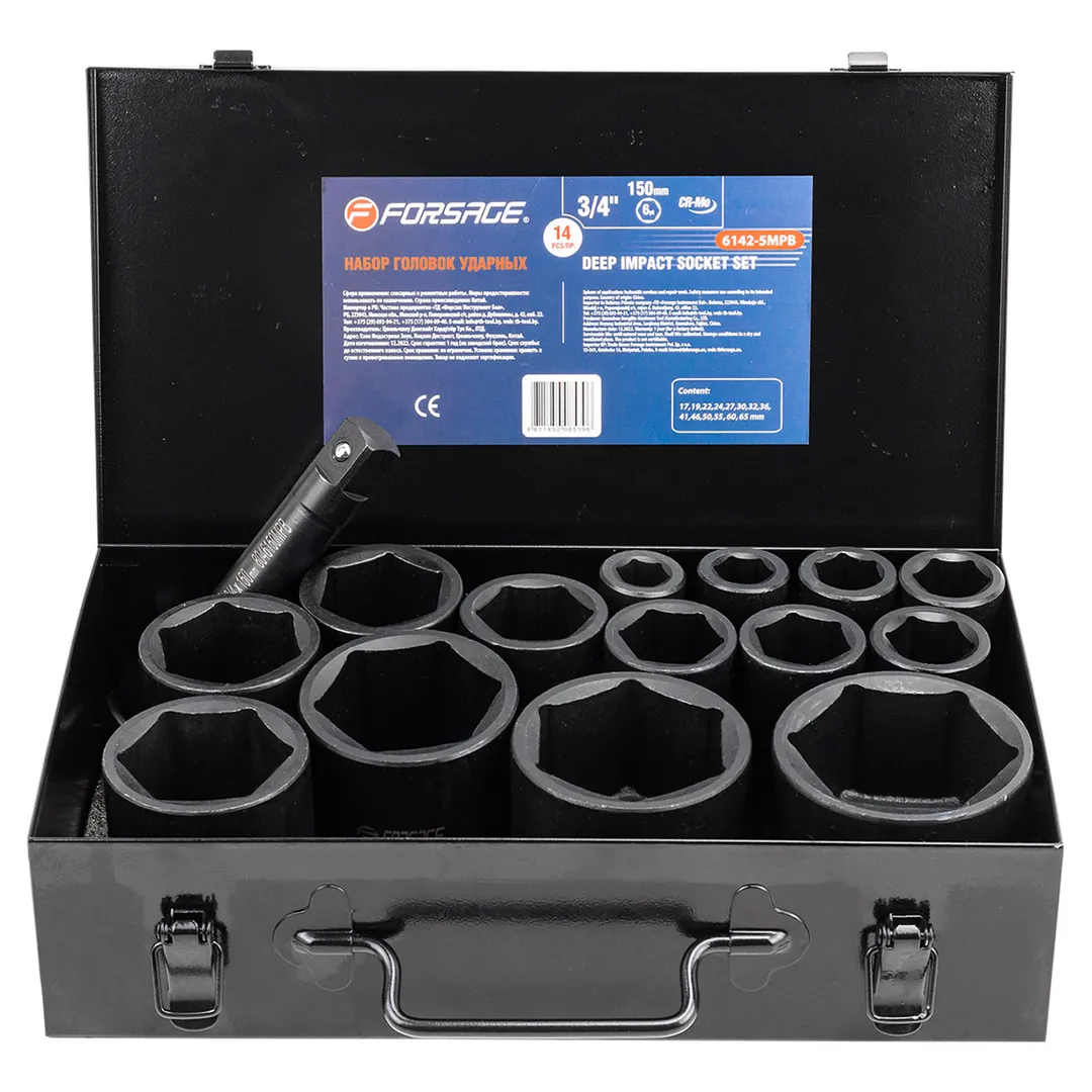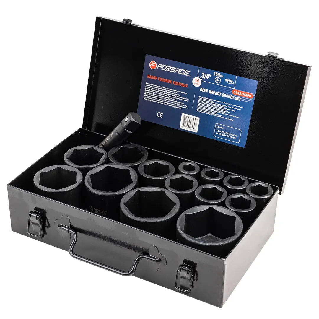 Набор головок ударных глубоких 3/4'' 14 пр 6-гр 17-65 мм в метал. кейсе Forsage F-6142-5MPB