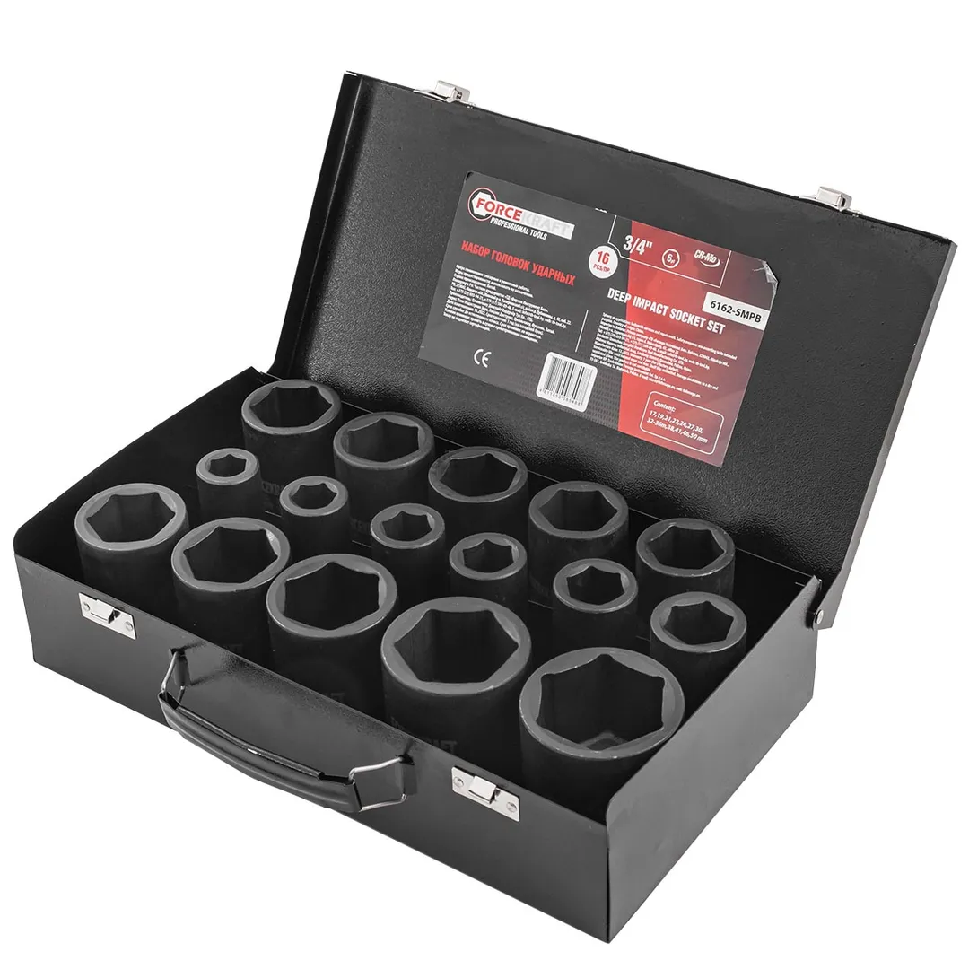 Набор глубоких ударных головок 17-50 мм 3/4'' 16 пр ForceKraft FK-6162-5MPB