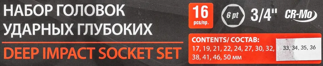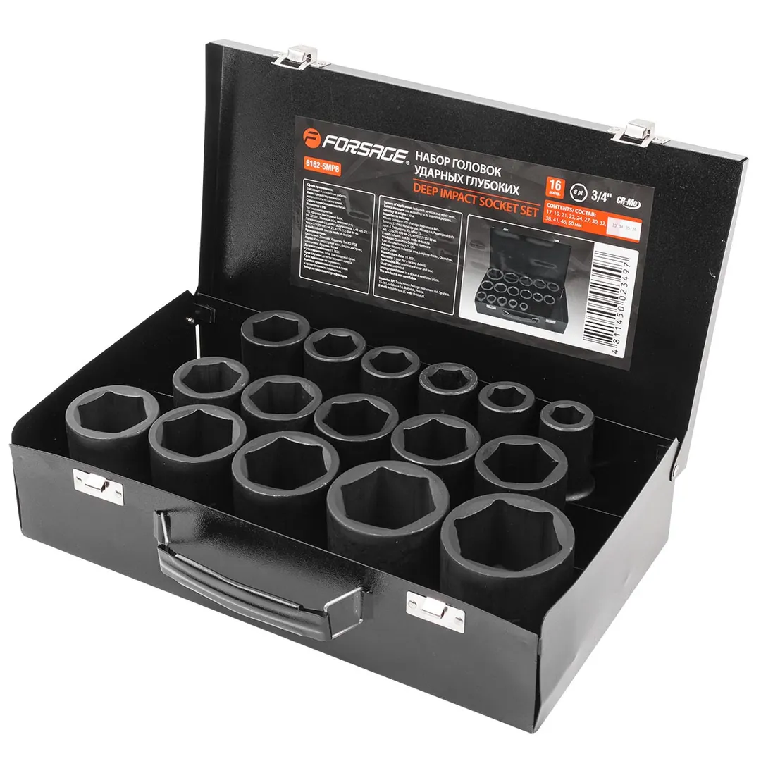 Набор головок ударных глубоких 3/4'' 16 пр 17-50 в кейсе Forsage F-6162-5MPB