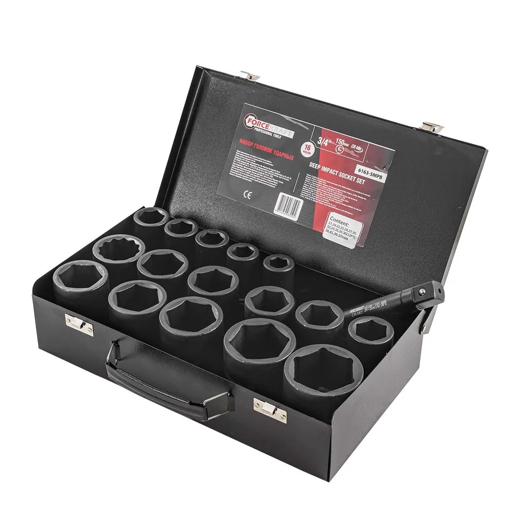 Набор головок ударных глубоких 3/4''16пр.(6гр.)(17,19,21,22,24,27,30,32,34,35,36,36-12гр,38,41,46,50мм)