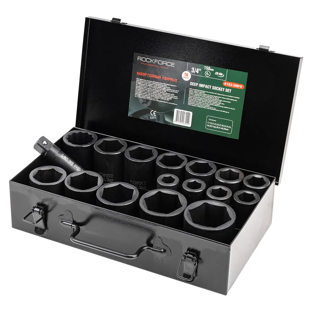 Набор головок ударных глубоких 3/4'' 16 пр 6-гр 17-50 мм, 12-гр 36 мм RockForce RF-6163-5MPB