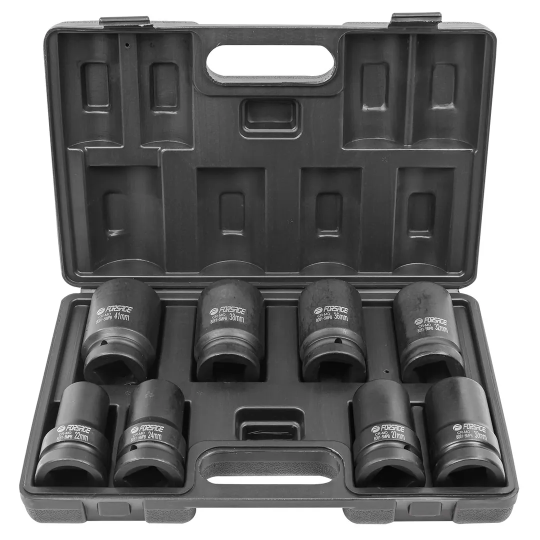Набор головок ударных глубоких 8 пр. 1" 6-гр. 22-41 мм Forsage F-8081-5MPB, описание и характеристики: