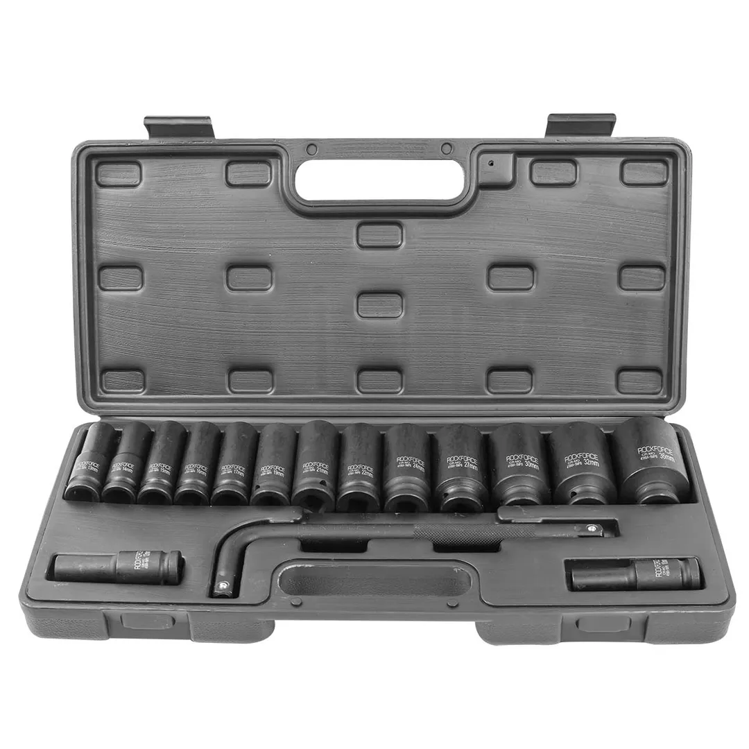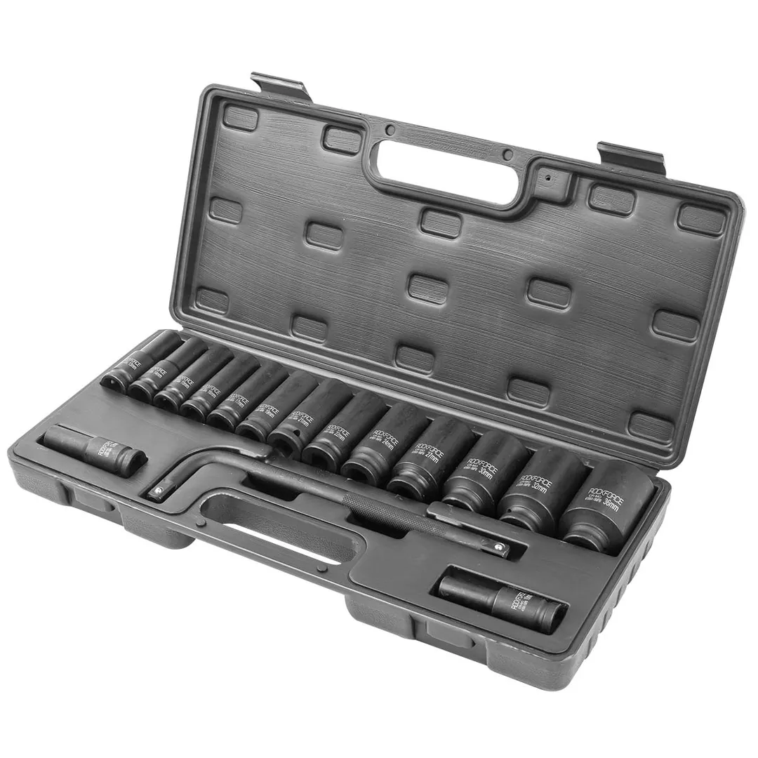 Набор головок ударных глубоких 10-36 мм 1/2'' 6-гр&12-гр 16 пр с Г-образным воротком RockForce RF-4166A-5MPB