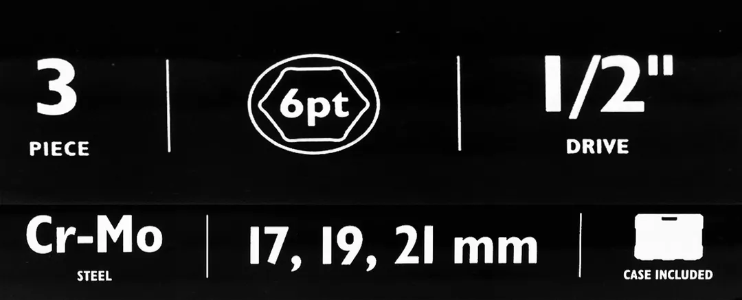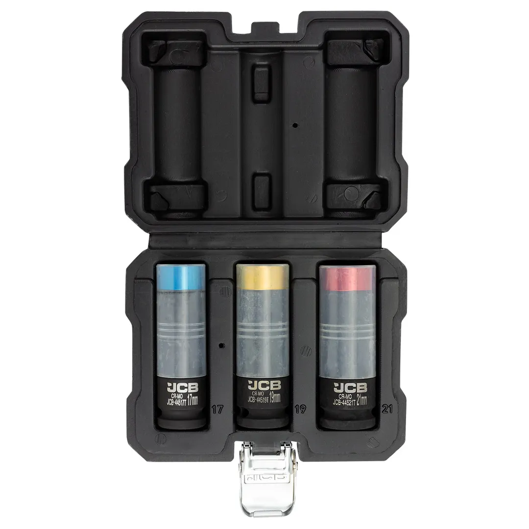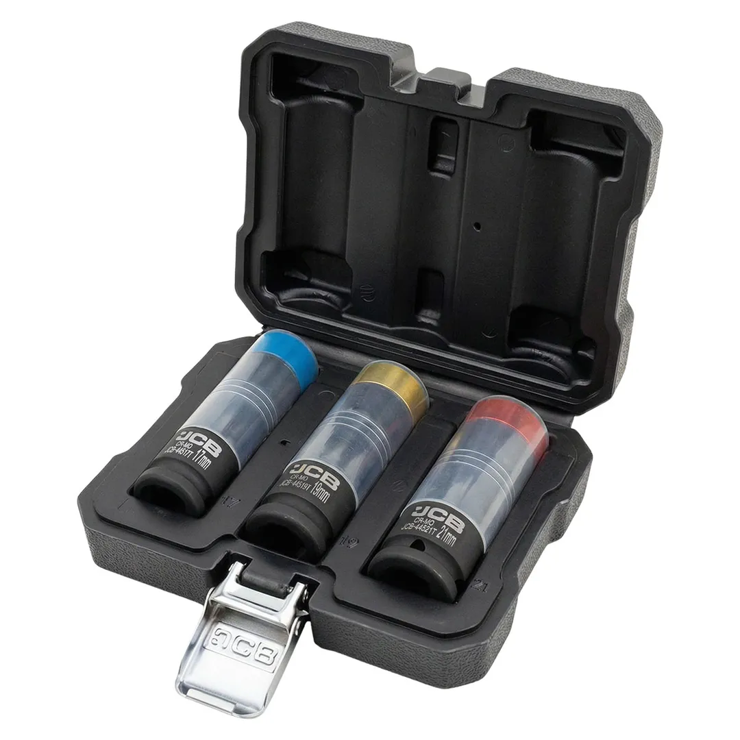 Набор ударных глубоких тонкостенных головок 17, 19, 21 мм в защитном кожухе 3 пр 1/2'' 6-гр JCB JCB-4035