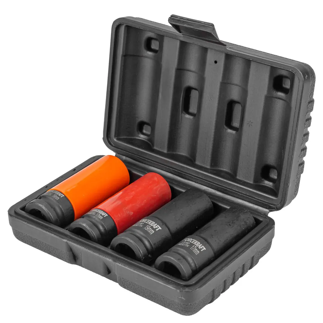 Набор головок ударных тонкостенных 4 пр. 1/2", 17, 19 + 17, 19 в защитном кожухе 6-гр. ForceKraft FK-4032TH44