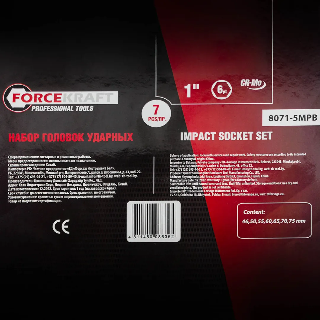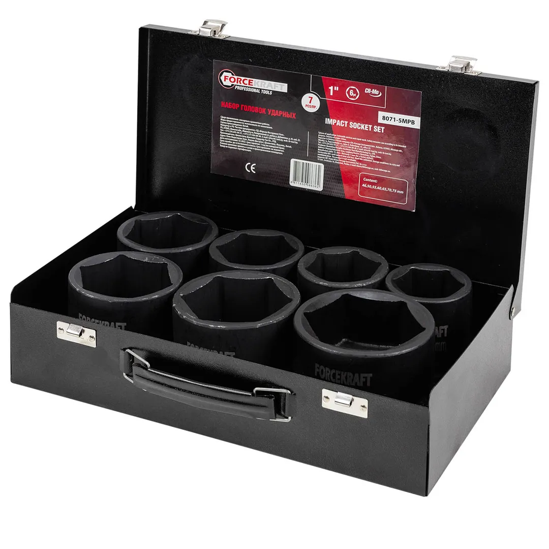 Набор головок ударных 7 пр., 1'' 6-гр 46-75 мм ForceKraft FK-8071-5MPB, описание и характеристики: