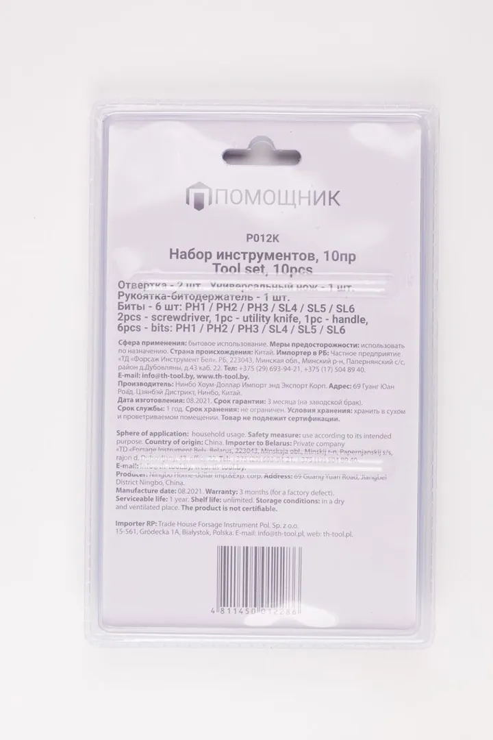 Отвертка с набором бит 10 пр. Помощник P012K, описание и характеристики: