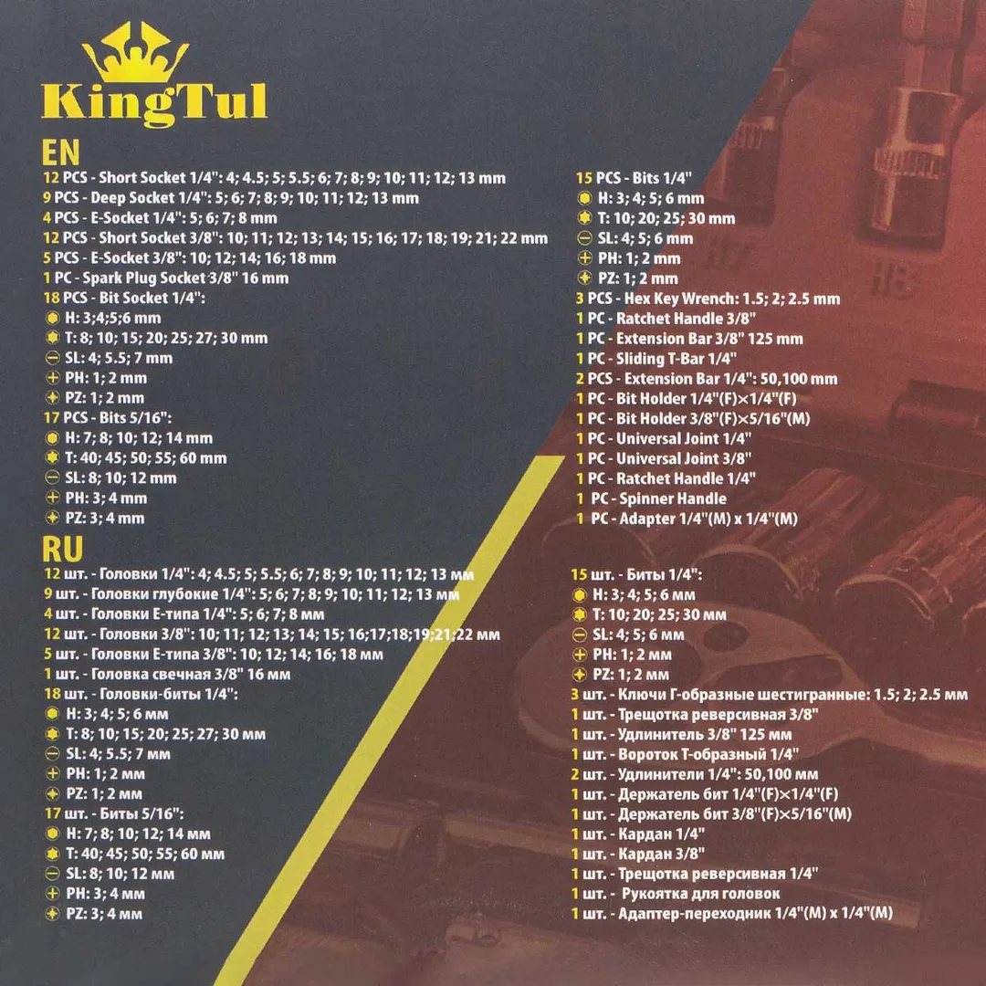 Набор инструментов 108 пр. 1/4''&3/8'' 6-гр. KINGTUL KT-41082-5DS