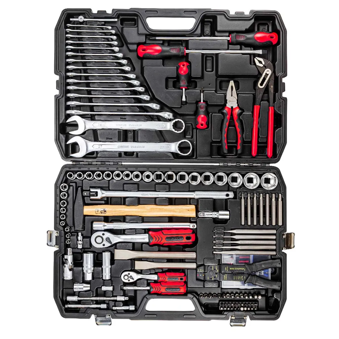Набор инструментов из 139 предмета имеет уникальную комплектацию и пригодится на СТО, в быту, в гараже. Благодаря набору можно легко и быстро выполнить любые работы, связанные с автомобилями и другой техникой. Все составляющие комплекта упакованы в пластиковый кейс, где у каждого предмета своя ячейка хранения. Кейс обеспечивает защиту инструментов от повреждений, а также удобен при транспортировке. Инструменты изготовлены из хромованадиевой стали (CR-V),обеспечивающие надежность и долговечность при использовании. Посадочный квадрат 1/4" и 1/2" . Комплектация: 6-гранные головоки 1/4" (4, 5, 6, 7, 8, 9, 10, 11, 12, 13мм), биты 1/4" 25 мм: Philips: PH0, PH1, PH2, PH3, Slotted: SL3, SL4, SL5.5, SL7, Pozidriv: PZ1, PZ2, PZ3, Torx: T10, T15, T20, T25, T27, T30, Hex: H3, H4, H5, H6, H7, биты 1/4" 75мм: H4, H5, H6, H7, H8, H10, H12, биты 5/16" 30мм: Philips: PH1, PH2, PH3, Slotted: SL4.5, SL5, SL7, Torx: T10, T20, T25, T27, T30, T40, T45, T50, трещотка 1/4" 45 зубьев, удлинители 1/4" 50 и 100 мм., кардан 1/4", гибкий удлинитель 1/4", отвертка под головки 1/4" 150 мм, битодержатель 1/4", вороток Т-образный 1/4" 115 мм., 6-гранные головоки 1/2" (10, 11, 12, 13, 14, 15, 16, 17, 18, 19, 20, 21, 22, 23, 24, 27, 30, 32мм), трещотка 1/2" 45 зубьев, удлинители 1/2" 75 и 250 мм., вороток шарнирный 1/2" 375 мм., кардан 1/2", свечные головки 1/2" 16 и 21 мм., держатель для бит 5/16", ключи комбинированные (6, 7, 8, 9, 10, 11, 12, 13, 14, 15, 16, 17, 19, 22, 24, 27мм), обжимной инструмент 225 мм., коннекторы обжимные в органайзере, 21шт, пассатижи переставные 250 мм., плоскогубцы комбинированные 175 мм, зубила с плоским основанием 8х150мм и 24х200 мм, молоток 300г, отвертки (PH2x40, PH3x200, SL6x40, SL8x200), выколотки (1.5х150, 3х150, 4х150, 5х150, 5х120 мм.), кейс.Преимущества работы с нами