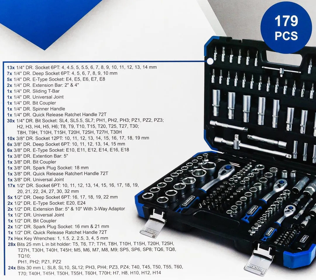 Набор инструментов 179 пр. 1/4''&3/8''&1/2'' 6-гр. Scheppach Sch-41793-5