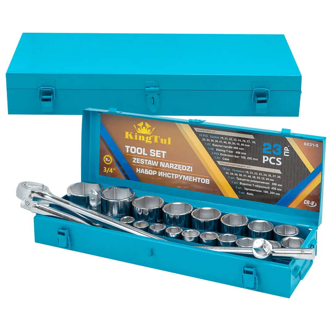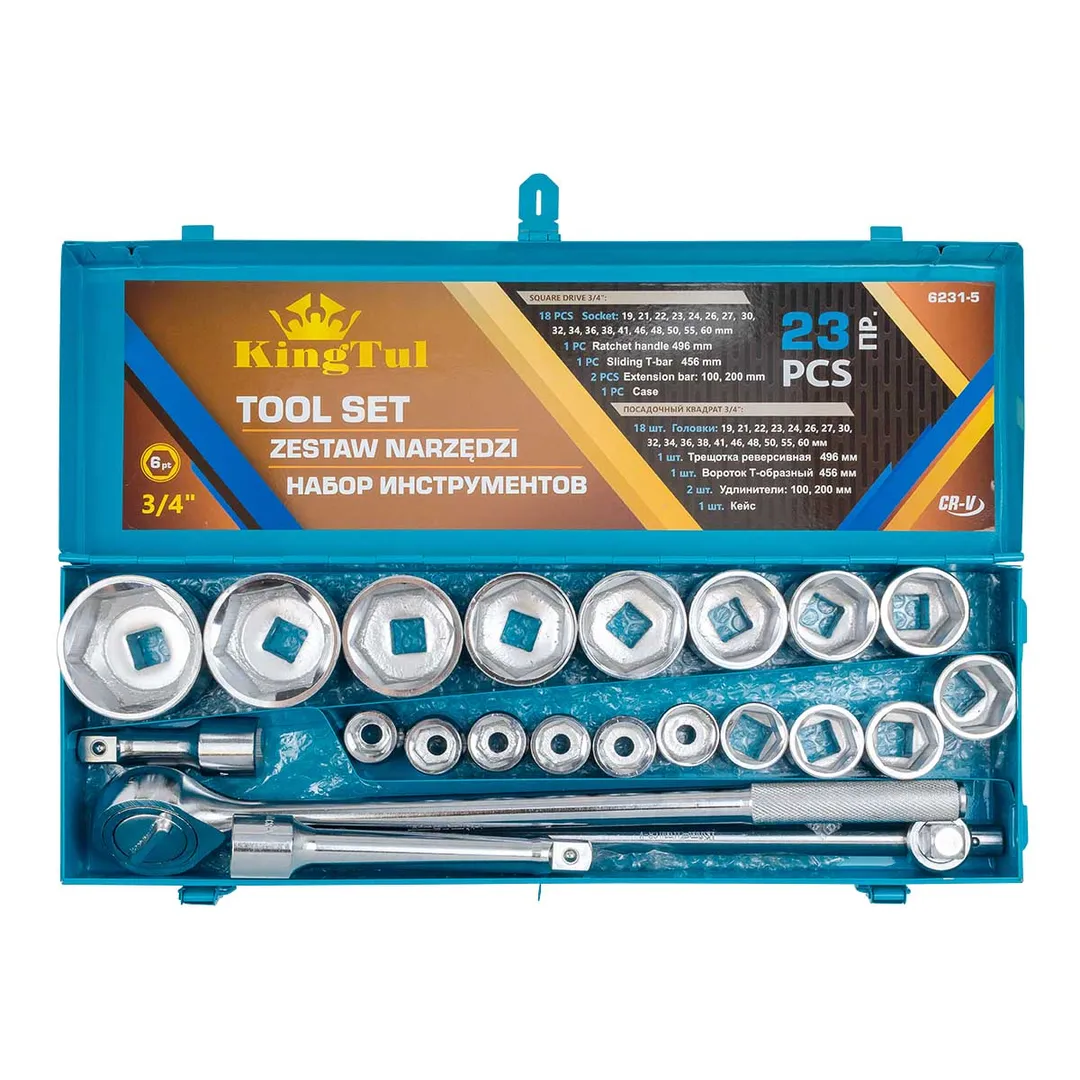 Набор торцевых головок 23 пр. 3/4'' 6-гр. 19-60 мм в металл.кейсе KINGTUL KT-6231-5