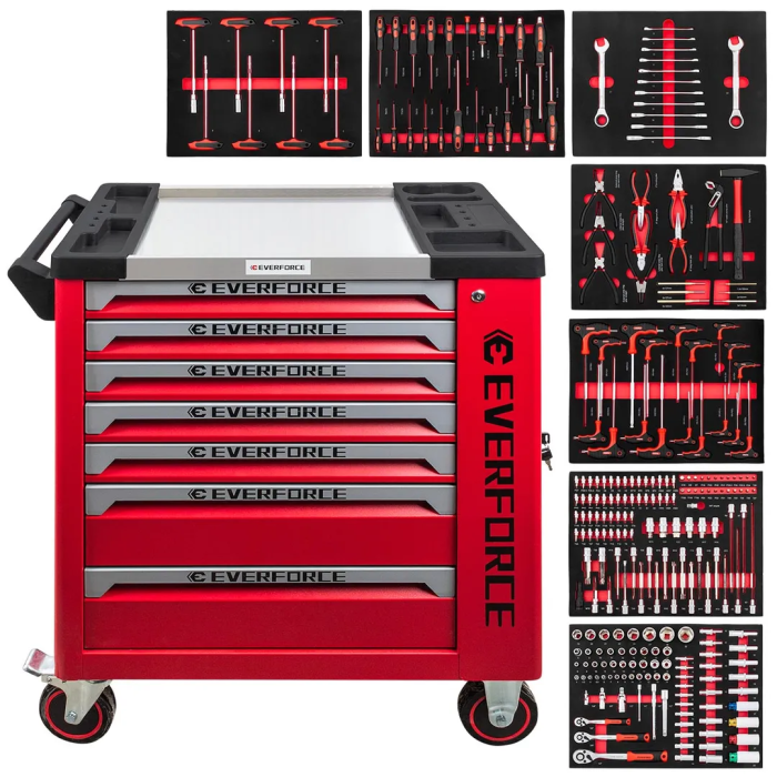 Набор инструментов 258 пр 1/4''&3/3''&1/2'' 6-гр в тележке EVERFORCE EF-55308