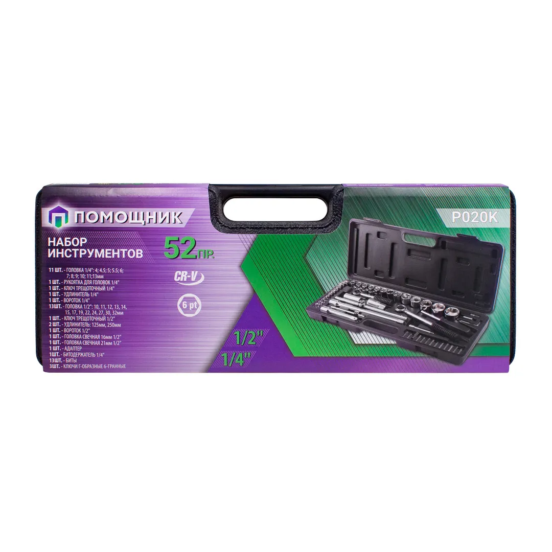 Набор инструментов 52 пр. 1/4''&1/2'' 6-гр. Помощник P020K, описание и характеристики:
