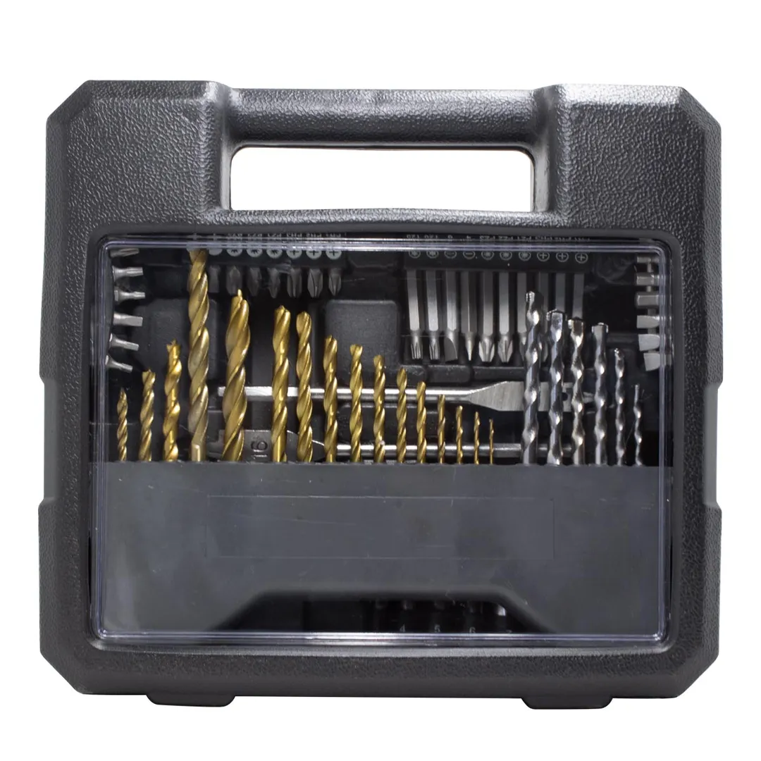 Содержание: 11 шт. - Сверла по металлу: 1.5, 2, 2.5, 3, 3.5, 4, 4.5, 5, 5.5, 6, 6.5 6 шт. - Сверла по бетону: 4, 5, 6, 7, 8, 10 5 шт. - Сверла по дереву: 4, 5, 6, 8, 10 3 шт. - Плоские сверла по дереву: 12, 16, 20 7 шт. - Головки 1/4" : 4, 5, 6, 7, 8, 9, 10 1 шт. - Битодержатель 10 шт. - Биты 50 мм 24 шт. - Биты 25 мм 1 шт. - Битодержатель 1 шт. - Зинкер 1 шт. - Рулетка 3 м 1 шт. - КейсПреимущества работы с нами