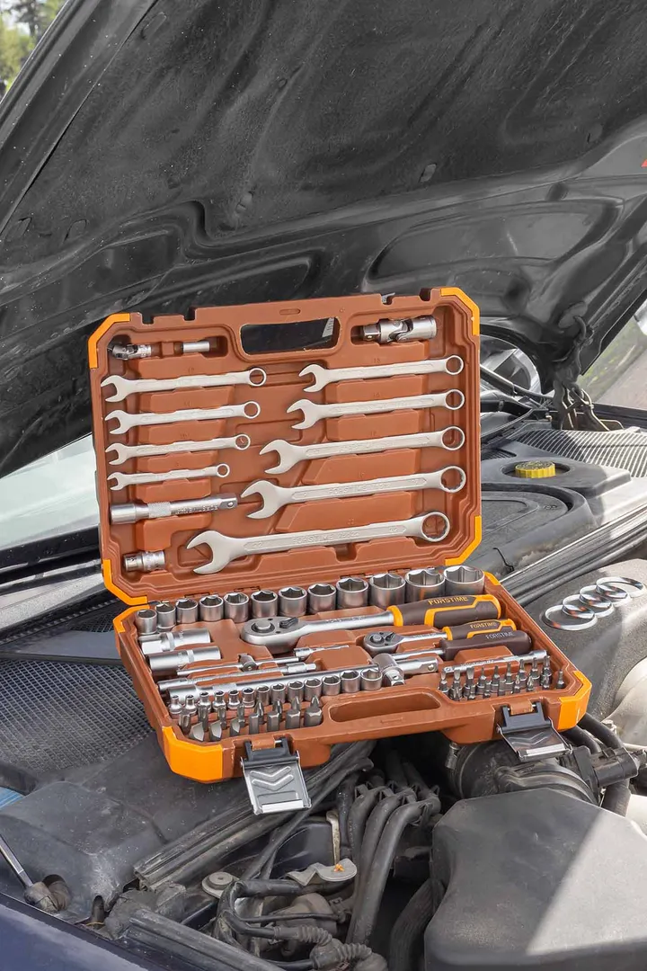 Набор инструментов из 82 предметов в кейсе. Набор инструментов очень удобен для профессионального механика и большинства домашних ремонтных работ. Этот набор инструментов изготовлен из высококачественной хромованадиевой стали. Включает самые необходимые инструменты для любого типа ремонта автомобиля, включая свечи зажигания, тормоза и обслуживание двигателя. Может использоваться для большинства механических операций, включая замену масла и обслуживание автомобилей. Головки и гаечные ключи совместимы с наборами инструментов других производителей. Отличный набор инструментов из 82 предметов, чтобы взять с собой в дорогу. Посадочный квадрат: 1/2" и 1/4" . Комплектация: головки 1/4" короткие 25 мм (4, 4.5, 5, 5.5, 6, 7, 8, 9, 10, 11, 12, 13, 14 мм.), головки-биты 1/4" HEX 35 мм (3, 4, 5, 6 мм.), головки-биты 1/4" TORX 35 мм (T8, T10, T15, T20, T25, T30), головки-биты 1/4" SL 35 мм (4, 5.5, 7), головки-биты 1/4" РН 35 мм (РН.1, РН.2), головки-биты 1/4" PZ 35 мм (PZ.1, PZ.2), трещотка 1/4", рукоятка 1/4" 150 мм., вороток Т-образный 1/4" 115 мм., удлинители 1/4" 50 и 100 мм., гибкий удлинитель 1/4" 145 мм., кардан шарнирный 1/4", биты 5/16" HEX 30 мм (8, 10, 12, 14 мм.), биты 5/16" TORX 30 мм (Т40, Т45, Т50, Т55), биты 5/16" SL 30 мм (8, 10, 12), биты 5/16" PH 30 мм (PH.3, PH.4), биты 5/16" PZ 30 мм (PZ.3, PZ.4), головки 1/2" короткие 38 мм (14, 15, 16, 17, 18, 19, 20, 22, 24, 27, 30, 32 мм), головки свечные 1/2" (16, 21 мм), трещотка 1/2", удлинители 1/2" 125 и 250 мм., кардан шарнирный 1/2", адаптер с отверстием с 3/8" (F)*1/2" (M), адаптер-переходник под шуруповерт 1/4" (F)*1/4" (F) 30 мм., битодержатель 1/2" (F)*5/16" (F), ключи комбинированные рожково-накидные (8, 10, 12, 13, 14, 15, 16, 17, 19 мм.), кейс. Все инструменты надежно хранятся в пластиковом кейсе с металлическими защелками, который обеспечивает удобную и компактную транспортировку. Комплектация набора идеально подходит для автолюбителей, автомастерских и сервисных центров.Преимущества работы с нами