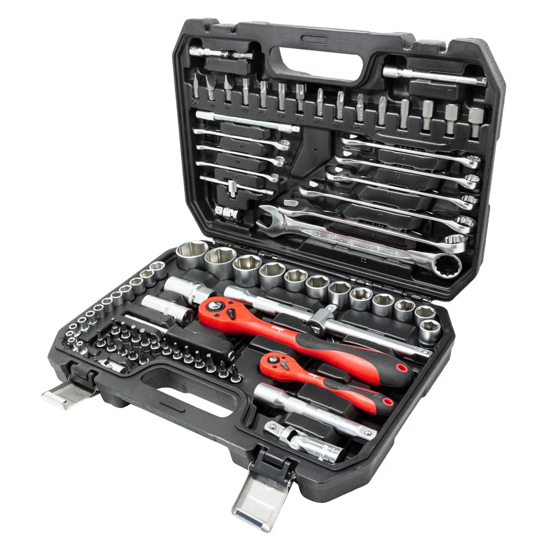Гарантированное качество, продуманная комплектация и справедливая цена - вот три основных составляющих популярности этого набора инструментов Disen для автомобиля. Не только специалисты автосервисов, но и автомобилисты любители наверняка оценят рациональный подбор предлагаемых инструментов, а также их физическую прочность, удобство в работе и долговечность. Производитель включил в состав этого компактного набора инструментов все виды ключей, которые обычно используются при ремонте авто - комбинированные ключи (с рожковой и накидной частью), торцевые и две свечные головки, а также несколько удлинителей и рукоятку трещотку с прорезиненной поверхностью. Набор применяется для ремонта на СТО, в гараже, в дороге, на даче и дома в быту. Комплектация: головки торцевые 1/2" короткие (14, 15, 16, 17, 18, 19, 20, 22, 24, 27, 30, 32 мм.), головки торцевые 1/4" короткие (4, 4.5, 5, 5.5, 6, 7, 8, 9, 10, 11, 12, 14,15 мм.), свечные головки 2 шт., вороток Т-образный 1 шт., головки-биты 17 шт., биты 15шт., трещотка 2 шт., рукоятка 1 шт., адаптеры 3 шт., ключи комбинированные 9 шт., удлинители 4 шт., гибкий удлинитель 1шт., карданы 2 шт., кейс. Компактный набор - отличный подарок мужу, брату, свату, коллеге! Набор станет незаменимым помощником в дороге! Для удобства хранения и транспортировки поставляется в прочном пластиковом кейсе с металлическими защелками.Преимущества работы с нами