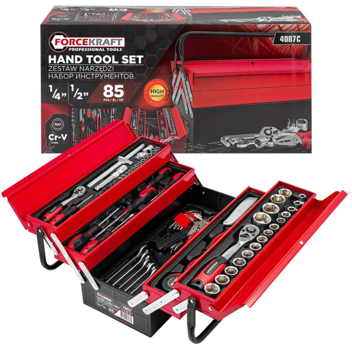 Набор инструментов 85 пр 1/4''&1/2'' 6-гр ForceKraft FK-4087C