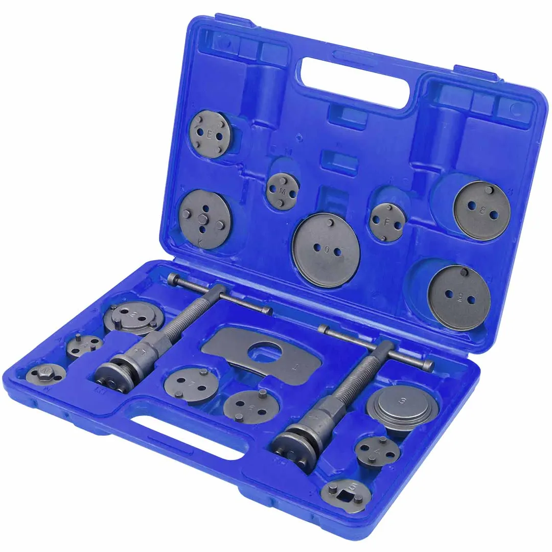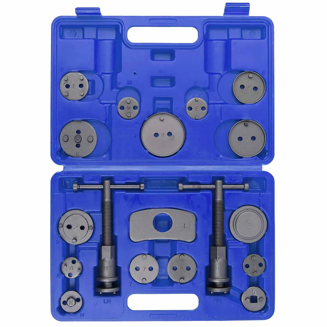 Набор инструментов для обслуживания тормозных цилиндров предназначен для вдавливания цилиндров суппортов автомобилей при ремонте и обслуживании тормозной системы. Разработан для работы с различными типами тормозных цилиндров, включая цилиндры с правым и левым приводами. Это позволяет использовать набор для обслуживания широкого спектра автомобилей. Набор включает в себя различные инструменты, необходимые для выполнения различных операций по обслуживанию тормозных цилиндров, включая снятие, установку, регулировку и замену деталей. Наличие всех необходимых инструментов в одном наборе упрощает и ускоряет процесс обслуживания. Инструменты в наборе изготовлены из прочных и долговечных материалов, таких как высококачественная сталь. Это обеспечивает долговечность и надежность инструментов при выполнении задач по обслуживанию тормозных цилиндров. В состав набора входят: насадки- адаптеры (15 шт.), планка-упор (1 шт.), ключ с левосторонней резьбой ( 1шт.), ключ с правосторонней резьбой (1шт.). Набор поставляется в удобном кейсе, который облегчает хранение, транспортировку и организацию инструментов.Преимущества работы с нами
