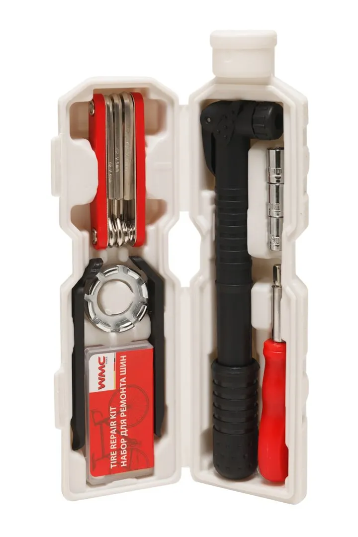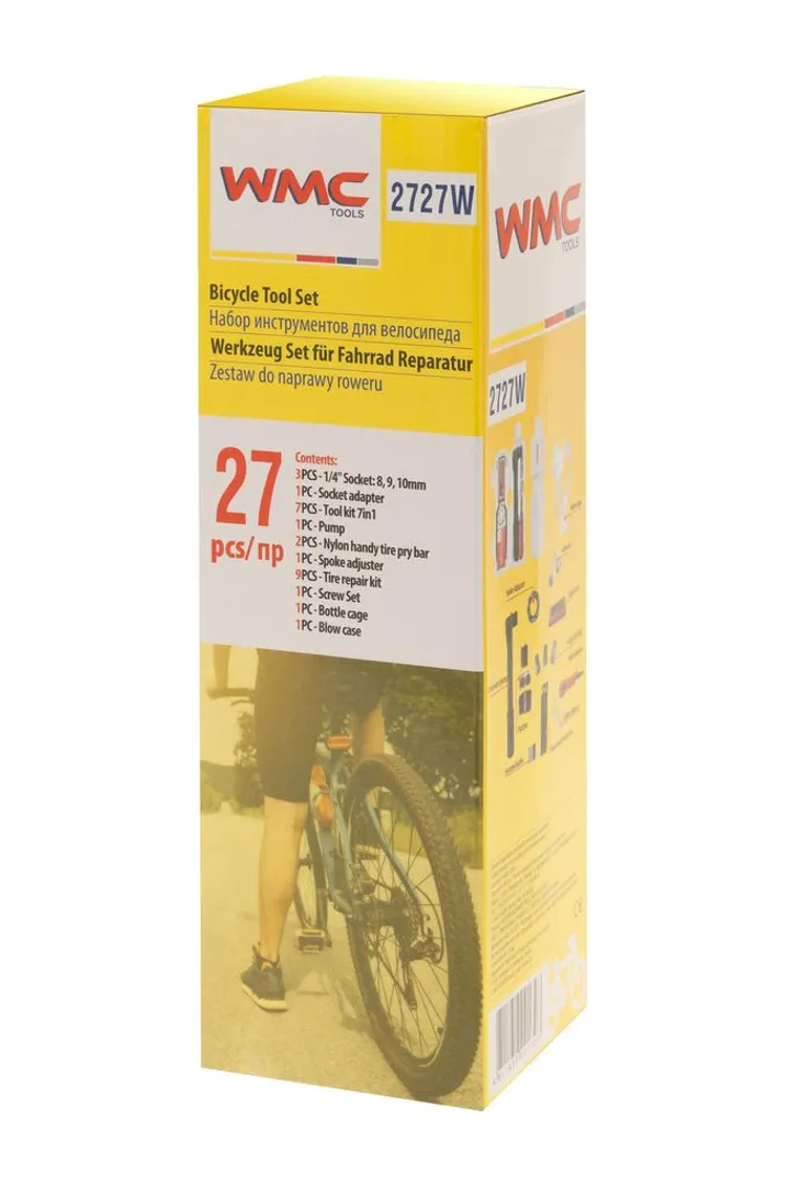 Набор инструментов для обслуживания велосипеда 27 пр., держатель фляги, в белой тубе WMC TOOLS WMC-2727W