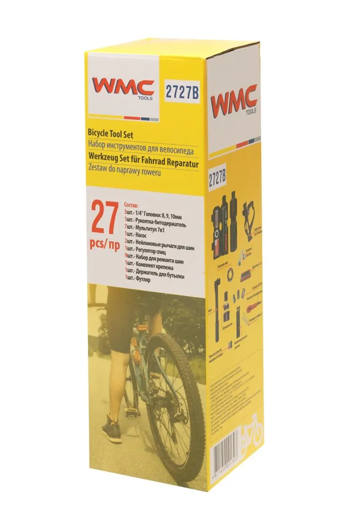 Набор инструментов для обслуживания велосипеда 27 пр., держатель фляги, в черной тубе WMC TOOLS WMC-2727B