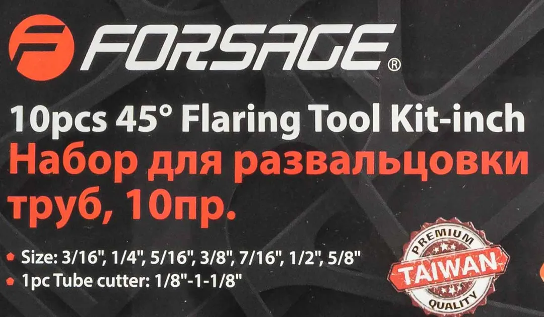 Набор инструментов для развальцовки трубок 10 пр., 3/16'', 1/4'', 5/16'', 3/8'', 7/16'', 1/2'', 5/8'' Forsage F-656, описание и характеристики:
