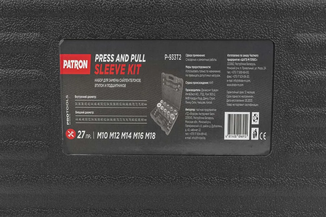 Набор инструментов для замены сайлентблоков, втулок и подшипников 27 пр. PATRON P-933T2, описание и характеристики: