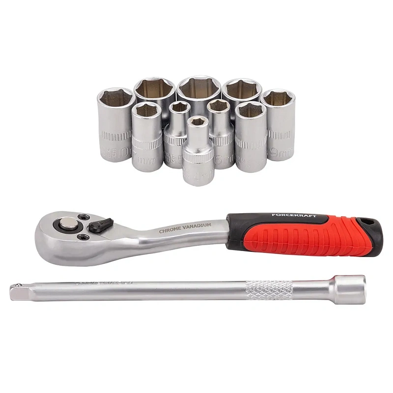 Набор головок 4-13 мм 1/4'' 6-гр, с трещоткой и удлинителем 12 пр ForceKraft FK-014-5 MSA