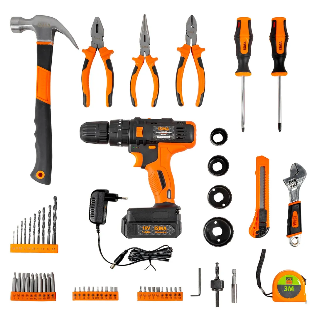 Аккумуляторный шуруповерт с набором инструментов 57 пр, 12V, 1.3Ah ISMA ISMA-1057