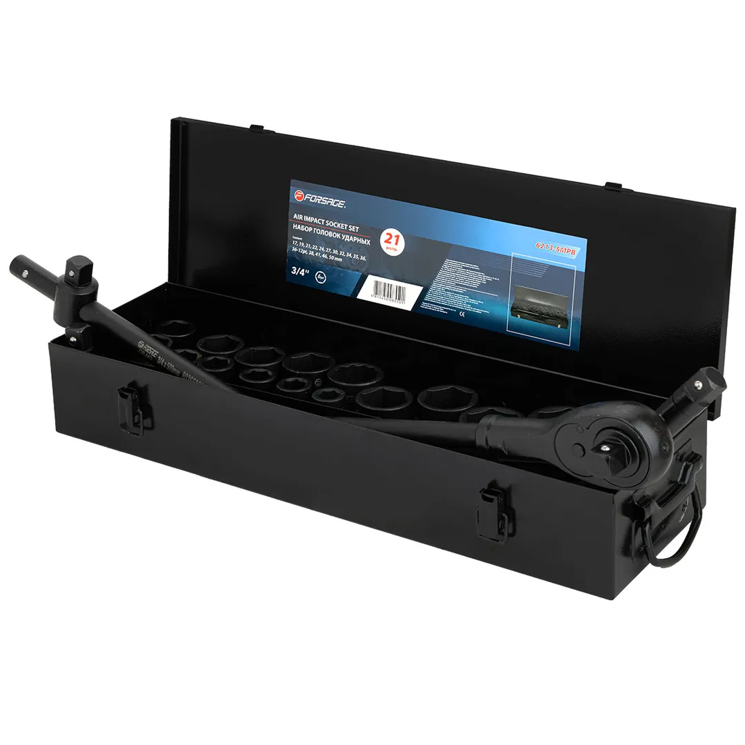 Набор инструментов ударных "Profi" 3/4", 6-гр, 21 пр, 17-50 мм Forsage F-6213-5MPB, описание и характеристики: