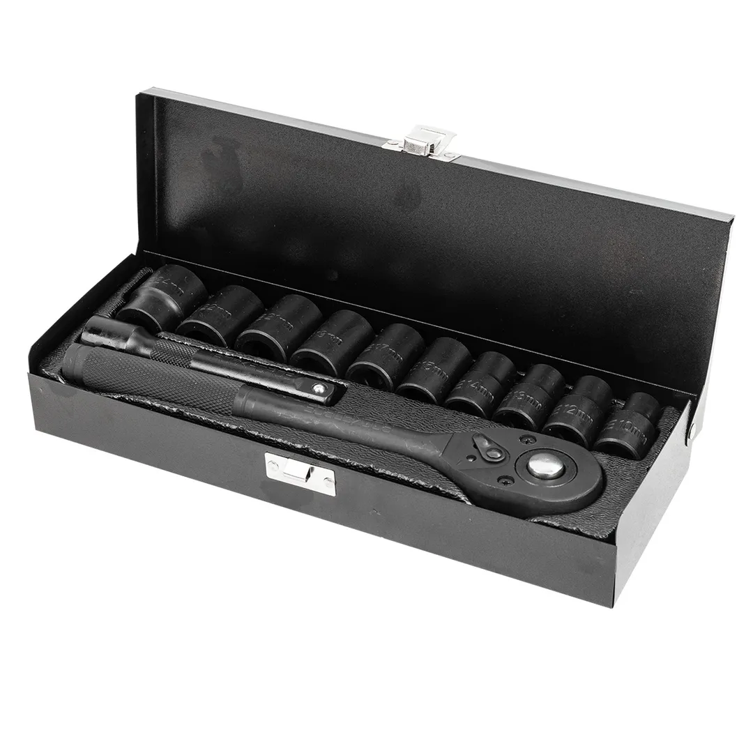 Набор ударных головок 10-24 мм с трещоткой и удлинителем 1/2'' 12-гр 12 пр RockForce RF-4122-9