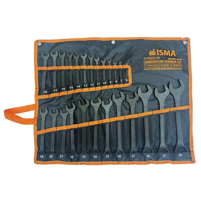 Набор комбинированных ключей 6-32 мм, рожковый ключ 36х41 мм 25 пр ISMA ISMA-5261P36 Black