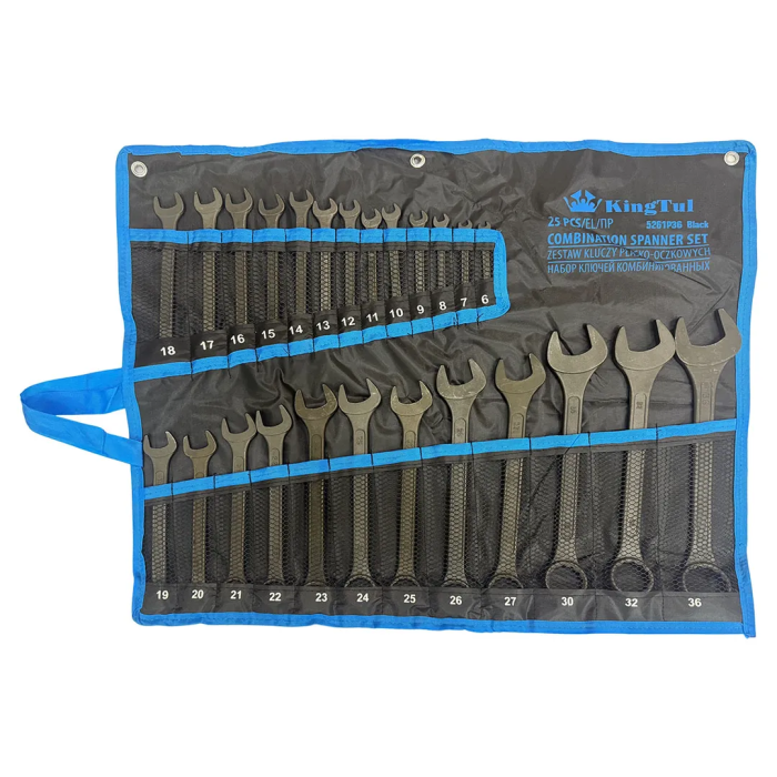 Набор комбинированных ключей 6-32 мм, рожковый ключ 36х41 мм 25 пр KINGTUL KT-5261P36 Black