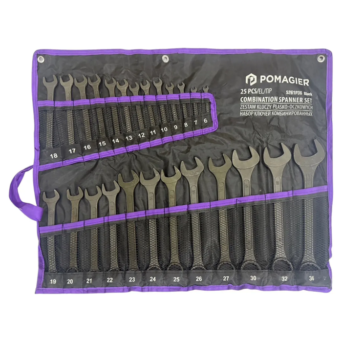 Набор комбинированных ключей 6-32 мм, рожковый ключ 36х41 мм 25 пр POMAGIER POM-5261P36 Black