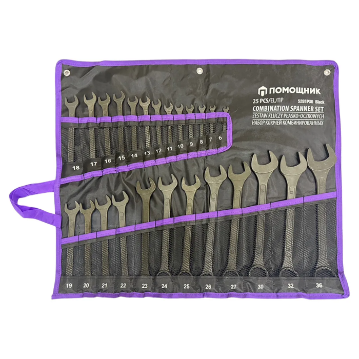 Набор комбинированных ключей 6-32 мм, рожковый ключ 36х41 мм 25 пр Помощник 5261P36 Black