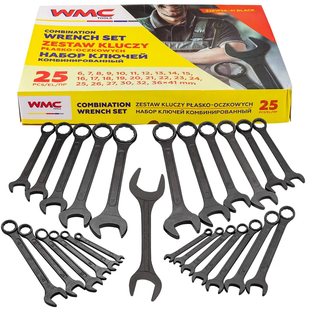 Набор ключей комбинированных 25 пр, 6-27, 30, 32, рожковый ключ 36х41 мм WMC TOOLS WMC-5261P36-41 Black