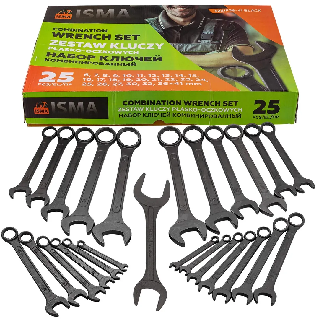 Набор ключей комбинированных 25 пр, 6-27, 30, 32, рожковый ключ 36х41 мм ISMA ISMA-5261P36-41 Black